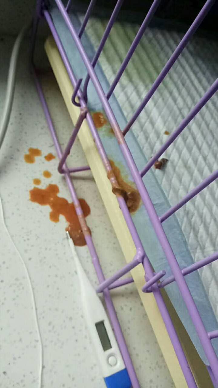 博美(美美),兩個(gè)月,剛到家兩天,主人喂了點(diǎn)牛奶,以后拉稀,精神沉郁。經(jīng)化驗(yàn)確診為細(xì)小(cpv)+冠狀(ccv)混合感染。經(jīng)過積極治療現(xiàn)在已經(jīng)恢復(fù)食欲,精神不錯(cuò),糞便正常。
