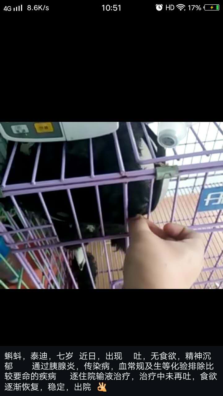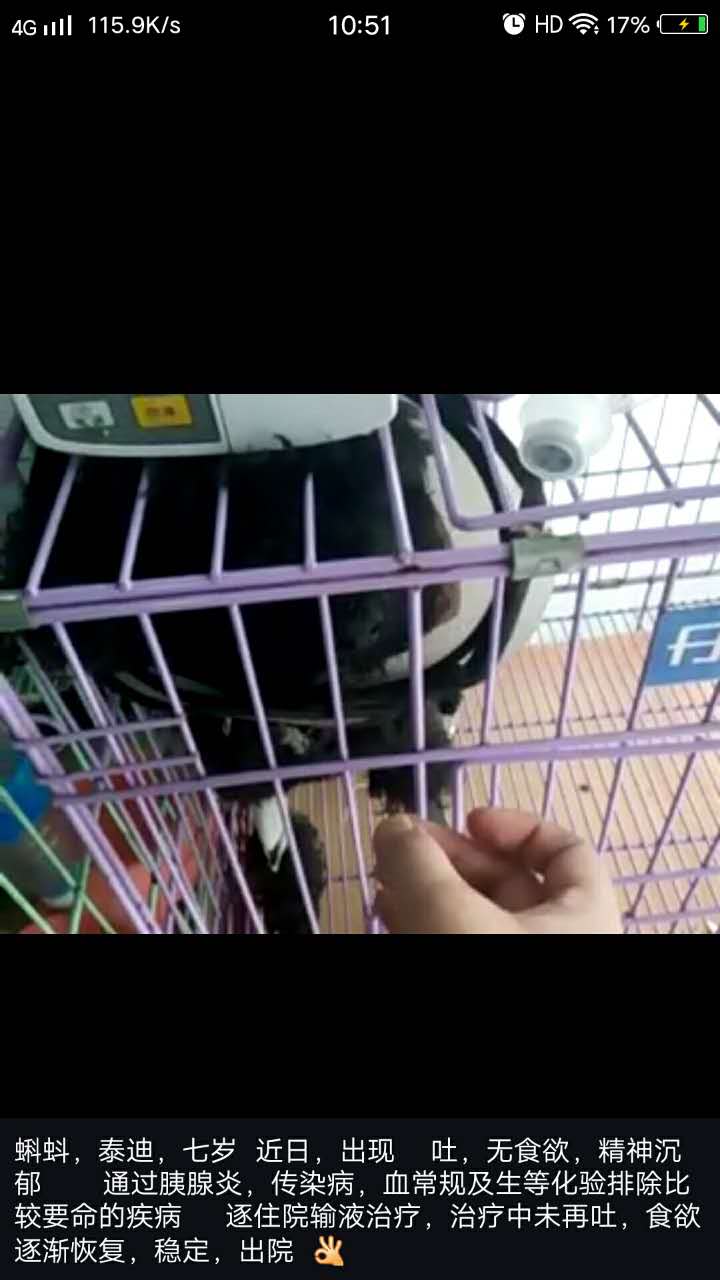 蝌蚪,泰迪,七歲 近日,出現(xiàn) 吐,無食欲,精神沉郁 通過胰腺炎,傳染病,血常規(guī)及生等化驗排除比較要命的疾病 逐住院輸液治療,治療中未再吐,食欲逐漸恢復,穩(wěn)定,出院