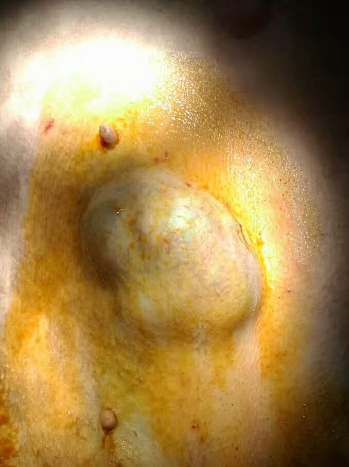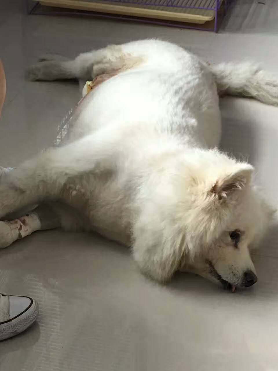 薩摩耶:同同,11歲,未絕育,約一年前發(fā)現(xiàn)腹部乳頭有瘤狀物生長(zhǎng),今年不斷變大,來(lái)本院就診為乳腺腫瘤?卵泡囊腫(左側(cè)11cm*6cm,右側(cè)數(shù)個(gè)直徑約0.5cm卵泡),實(shí)施腫瘤摘除?絕育手術(shù),一起順利,狗狗已經(jīng)蘇醒。溫馨提醒:不以繁殖為目的養(yǎng)寵,請(qǐng)盡早為她做絕育,這樣她們可以多陪你幾年。